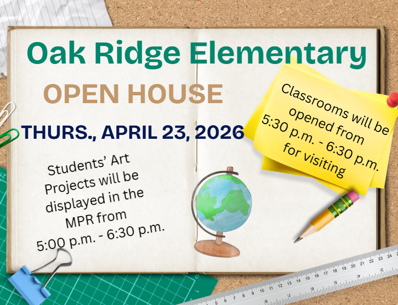 Oak Ridge Elementary’s community of educators, parents, and students embrace a balanced and rigorous curriculum accessible to all learners. Our school will engage in meaningful learning through creativity, communication, collaboration, and critical thinking. Students will reach their fullest potential through perseverance and high expectations in a safe and nurturing environment.
